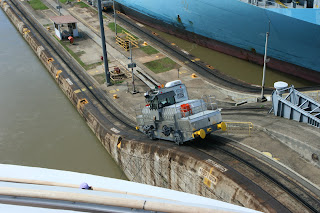 After the first Miraflores lock, the locomotives go up a small hill as we moved into the second lock and process was repeated.