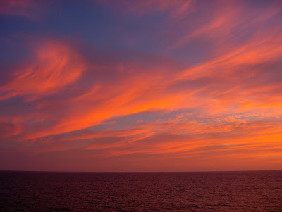 Some images just need to stand alone. This was the sunset that we saw after leaving Cabo San Lucas. We were waiting for our dinner seating at 8:30 and wandered to the back of the boat to find a snack for Brandon. We sat on Deck 9 aft and watched the sun go down. I thought it looked like it would be a beautiful sunset with the clouds and the ocean, so decided to watch it until its end (Patrick and Brandon left to go do something else). You always hear that the best colors come after the sun actually goes down, and that is so true. This photo was taken about 10 minutes after sunset.