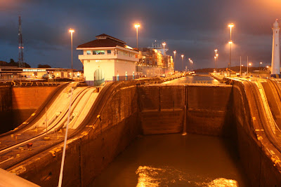 Patrick and Brandon went back inside during the second lock, but I stayed into the third until I could no longer get good pictures and hold the umbrella by myself. By the time we finally exited the locks, it was around 8:30pm and it had taken us approximately 12 hours to travel through. We were able to see one of the man-made wonders of the world, on a beautiful ship, the three of us together. The experience of a lifetime, that is for sure.