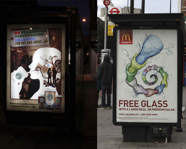 We see spirals every day, even if you haven’t noticed it lately. I captured these two images of bus shelter advertisements in different cities on our recent trip to England. Spirals are used in graphic arts to denote natural beauty and to convey energy. They catch your eye and draw you in.