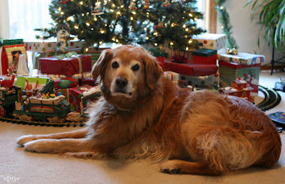 We lost a pet this year too (cat) but we still have our golden retriever. Your usual Christmas decorations are very impressive indeed – I love the train set surrounding the tree! Buono Natale to you.
