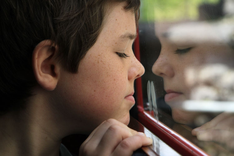 Here is another example, of my son looking out of a train window. The reflection draws your eye to his profile. Look at it for a while and you start to see the symmetric shape between the two profiles. You’ll also notice that the key areas of his face in the reflection – eyes, nose, lips – are clearly visible while the other parts are modified by what is seen out the window.