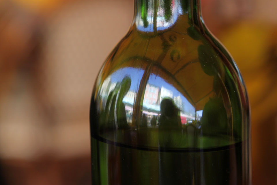 And, just a reminder, glass is just not windows and doors! Here is a wine bottle, but in it there is a reflection of me and my family along with the buildings across the street in Nice, France. The subject here is the bottle, but the reflection adds interest.