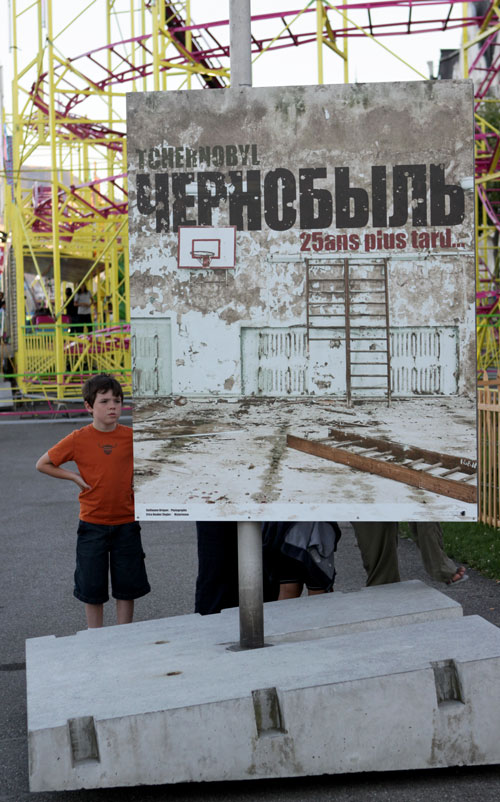 While wandering the waterfront in Geneva, we ran into a photography exhibit called “Chernobyl: 25 Years After the Catastrophe.” Powerful images from Guillame Briquet, showing the area surrounding Chernobyl today. He captured the decay of the human creations and the rebirth of nature left to itself, even in the wake of such a damaging event. What a contrast, against the backdrop of the festive carnival also happening along the lakefront. The most striking images for me were the ones that showed the evidence of lives interrupted. Just left behind. And the saddest part? It was too late for most of the people in the town of Pripyat to survive, since they were evacuated a full day after the accident because of the extreme radiation to which they were exposed.