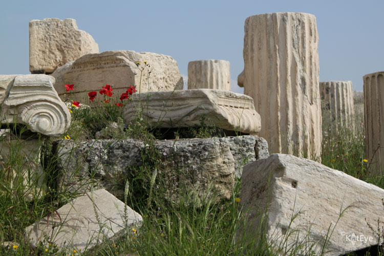 Along with old/new, visits to ruins can give a great contrast between natural and man-made. I love showing decaying ruins along with thriving nature. It makes quite a commentary on the permanence of what we create in the larger scheme, doesn’t it? The opening photograph of the poppies and the Greek ruins at the Acropolis, and this image of a blooming tree by the Roman ruins of Ostia Antica near Rome are good examples.